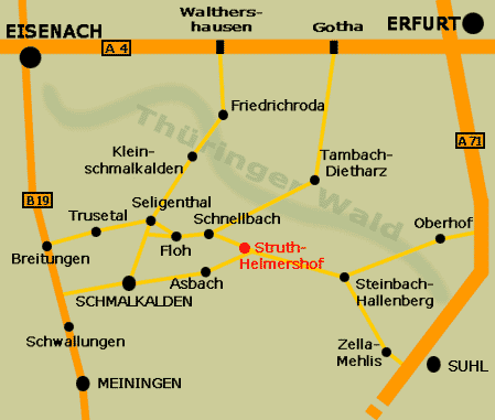 Aber auch mit öffentlichen Verkehrsmitteln ist die Anreise möglich: Der nächste Bahnhof befindet sich in Schmalkalden, von wo aus werktags ein Bus nach Struth-Helmershof fährt.